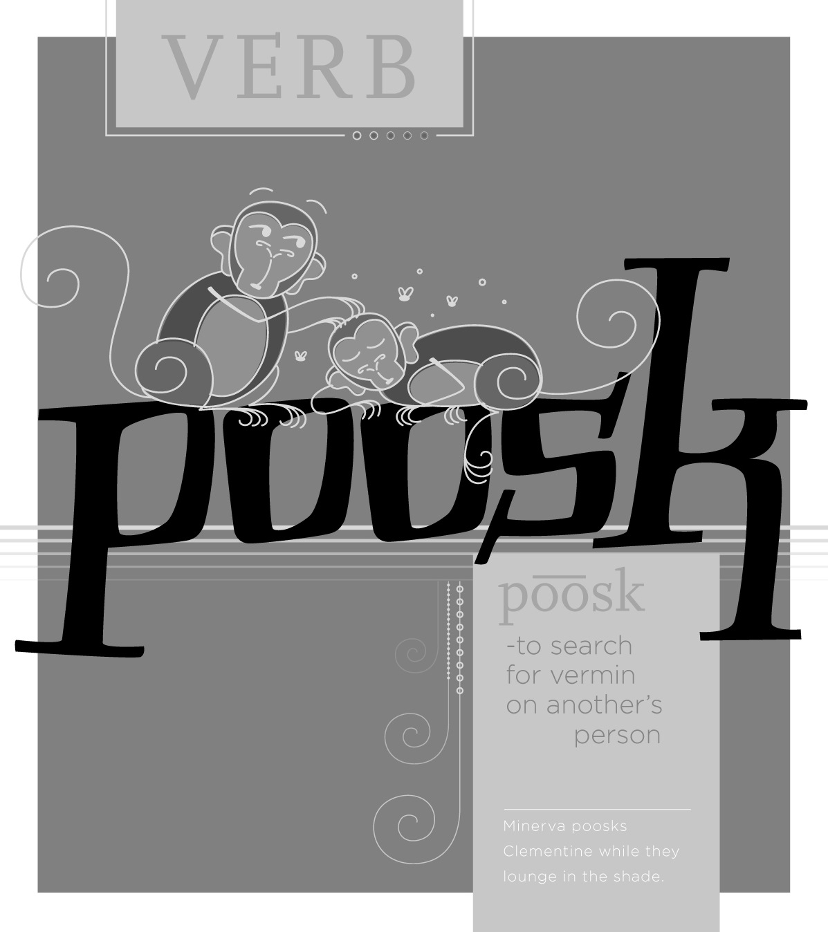 This summer I’m working on a series of poster/cards that feature strange words. This design started out colored but I made to grayscale so I could focus on the design and not be distracted by the color…never fear, it will again at some point have color.