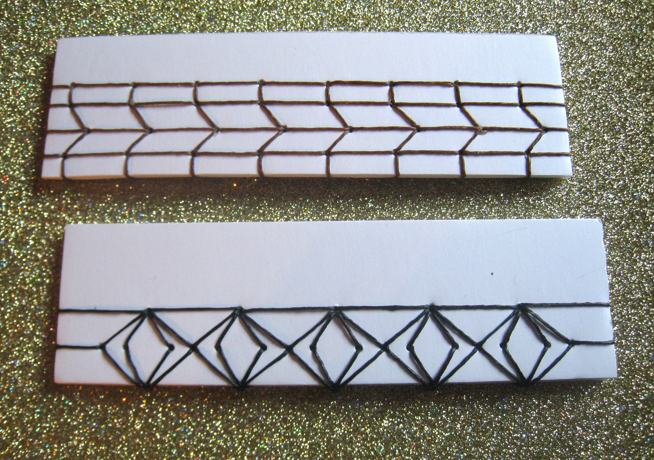I think the tire treads could also be described as chevrons or a spiderweb. I like the look. I’m completely new to this art of Japanese stab binding, but it creates some very beautiful effects. Thanks for sharing with the Internet.