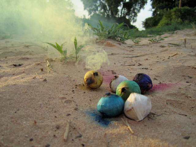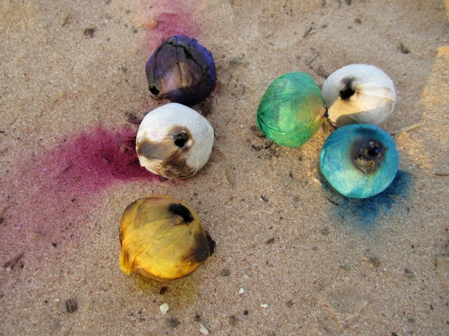 Eww…I remember those yellow grasshoppers from Florida! And shivers at the fire ants…get the poison! Smoke bombs….hmmmm…need more smoke.