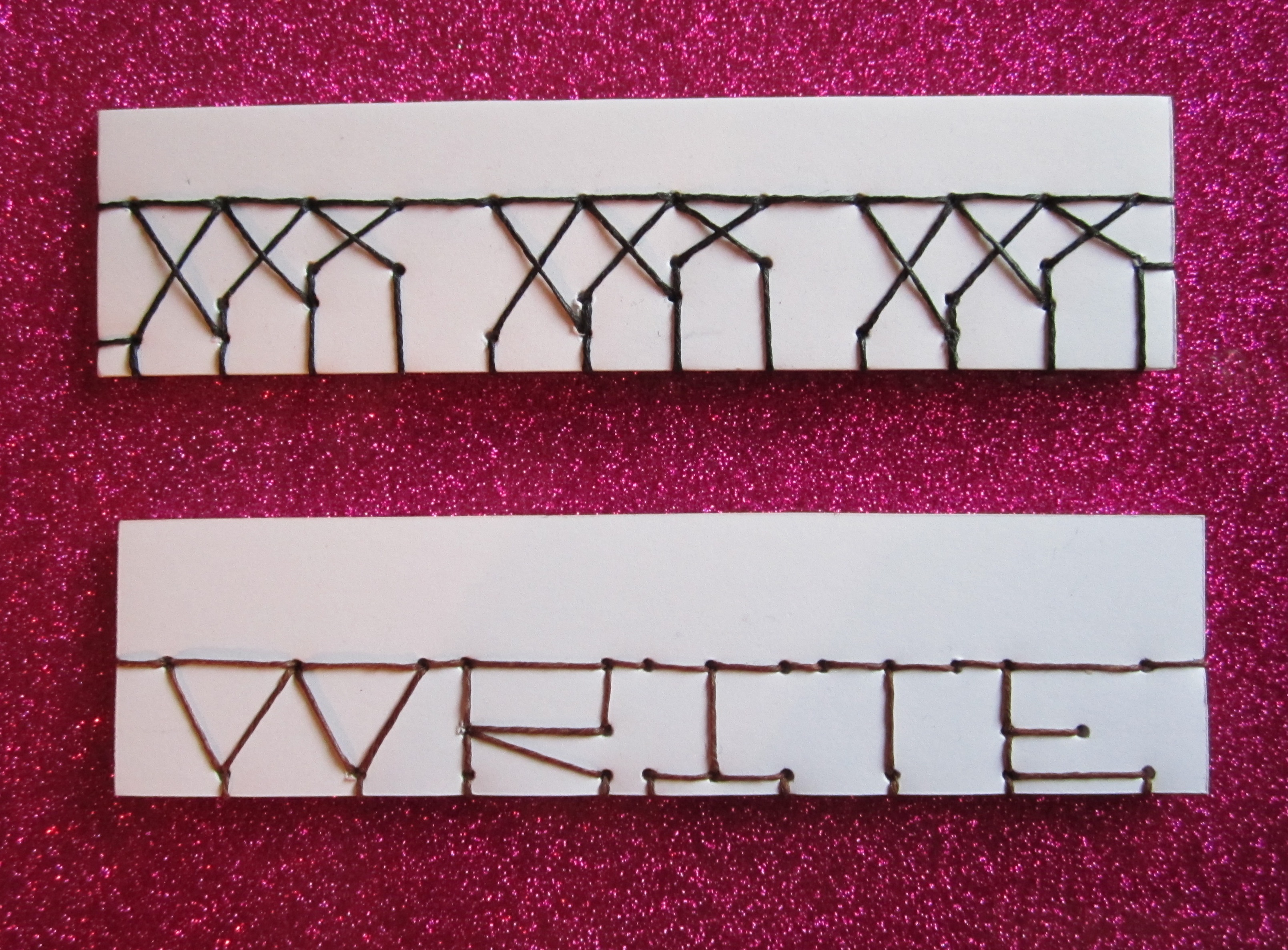 Thanks, Annie! When you ask how I bound the pattern, what do you mean? What the instructions are? ‘Memory’ shouldn’t be to difficult a bind to put together. It depends on if you want a cursive style, or all caps.