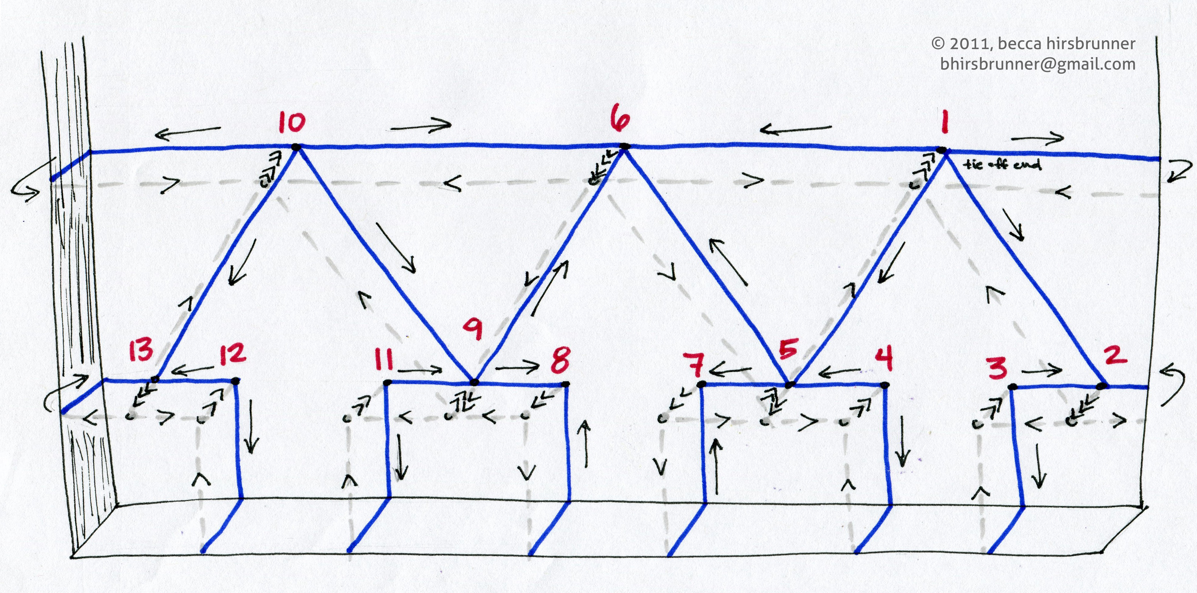 I suggest that you practice with a scrap of foam-board first…it’s simple to punch holes in, and easy to pull the needle through. Plus you can get a feel for the rhythm of the pattern.