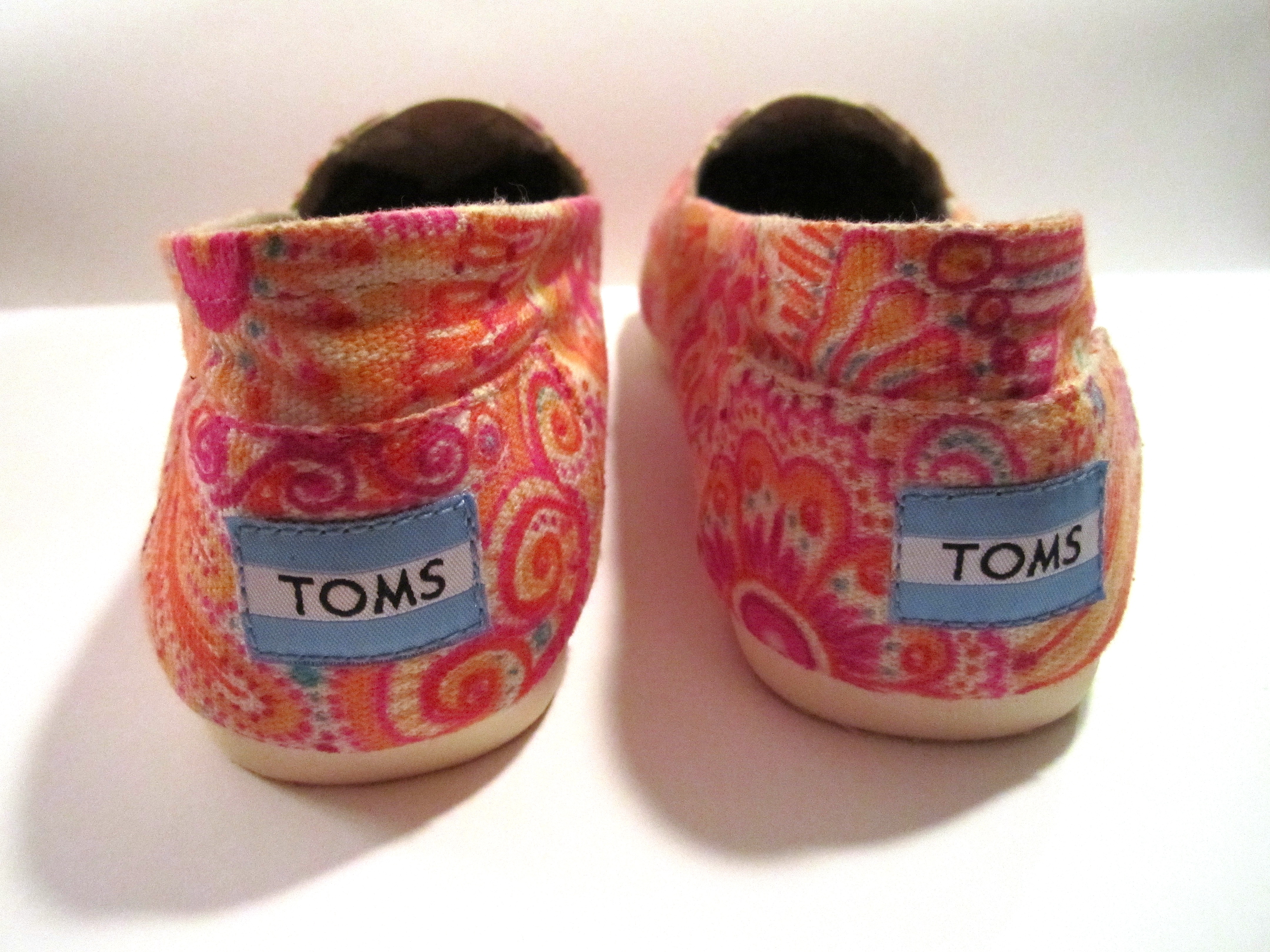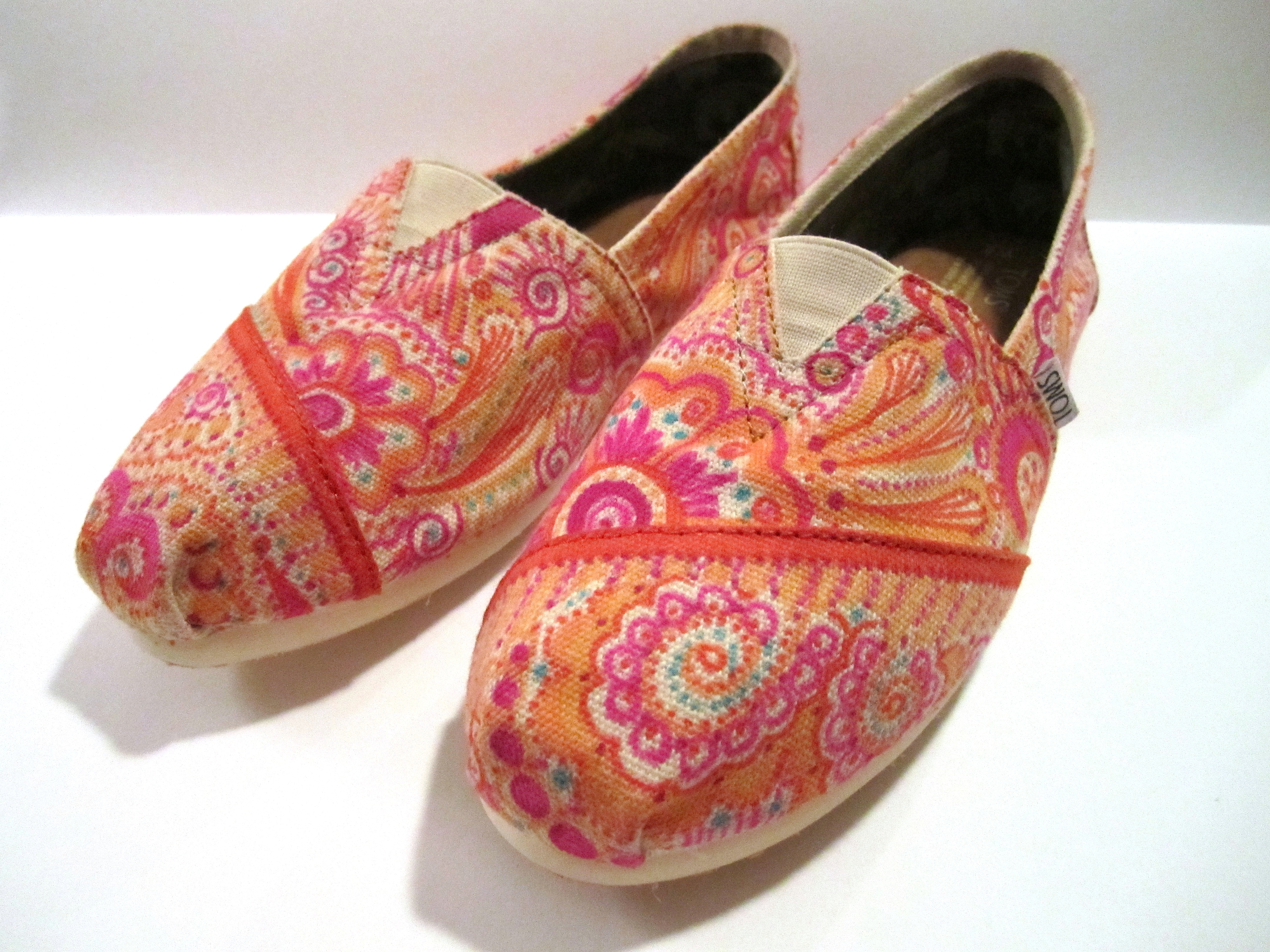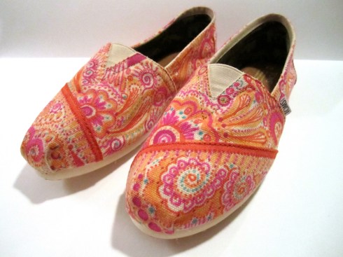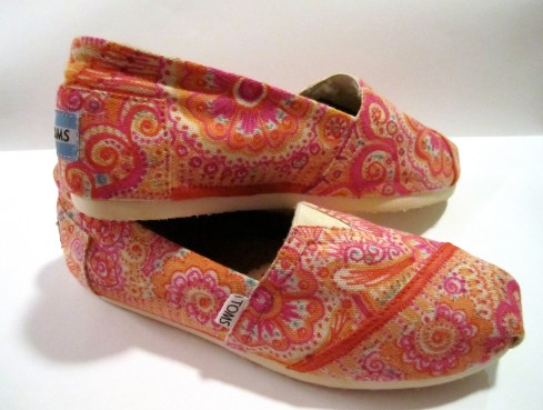 A friend and I have been meaning to each decorate a pair of TOMS shoes for months now. We finally managed it today! Seven hours later, here are what mine look like. If you can believe it, they are even brighter in person! We used sharpie markers.