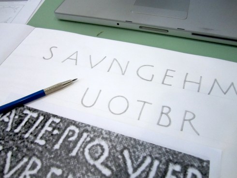 Day one…learning how to draw the ‘spines’ of the ancient Roman letters from the xerox sheet. I like my O! We will be digitizing these this week. I think.