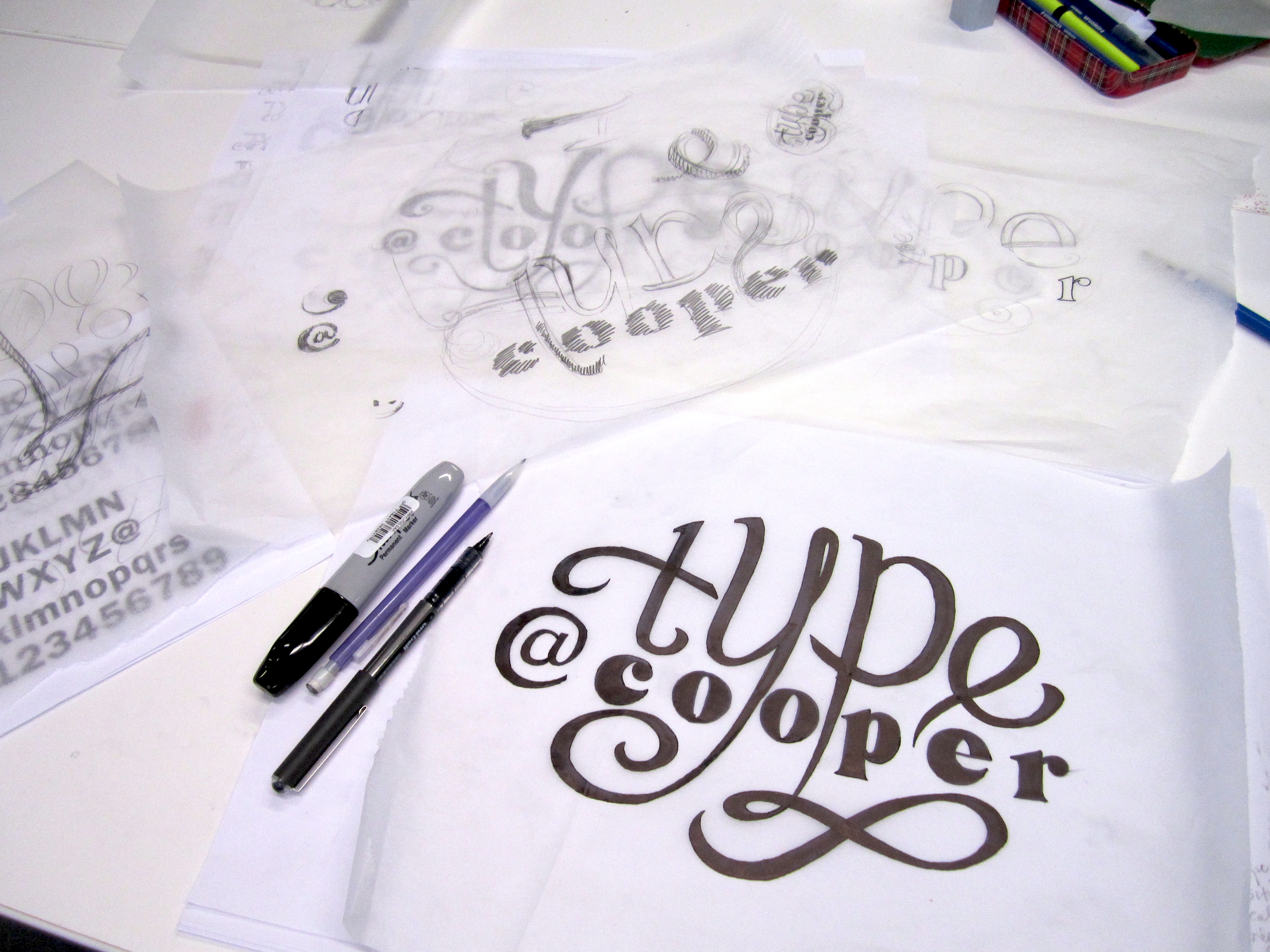 Guest lecturer Ken Barber talked to us about lettering today…and this was our project for the rest of class. Graphite and pen smudges abounded!