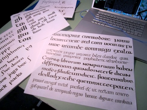 Today I drew uncial scripts for over four hours. Several styles, trying to get a feel for the letters and how they were created. From there I developed a lowercase alphabet. My goal was to create a font that could be used for children’s storybooks, or fairy tale books.