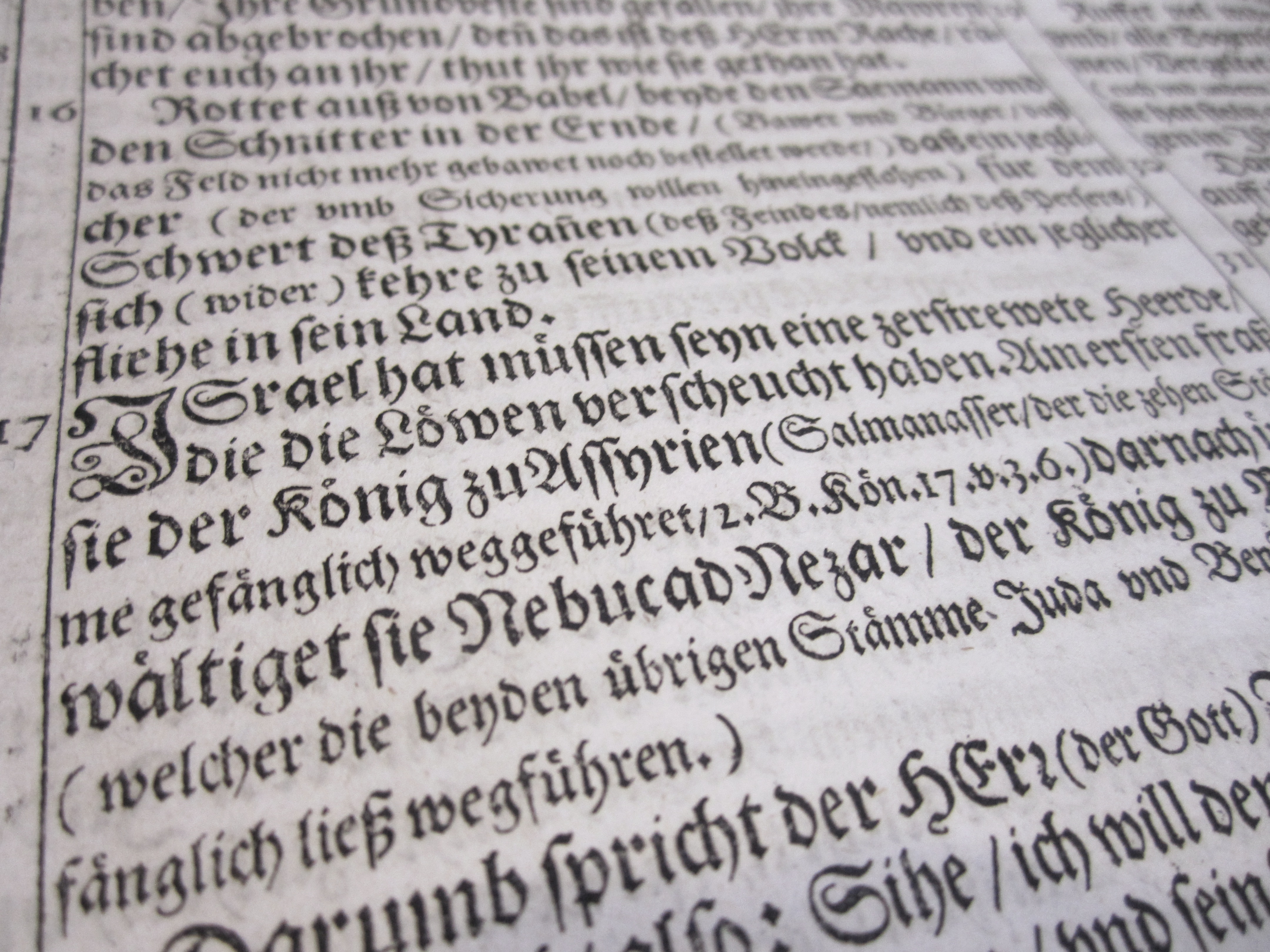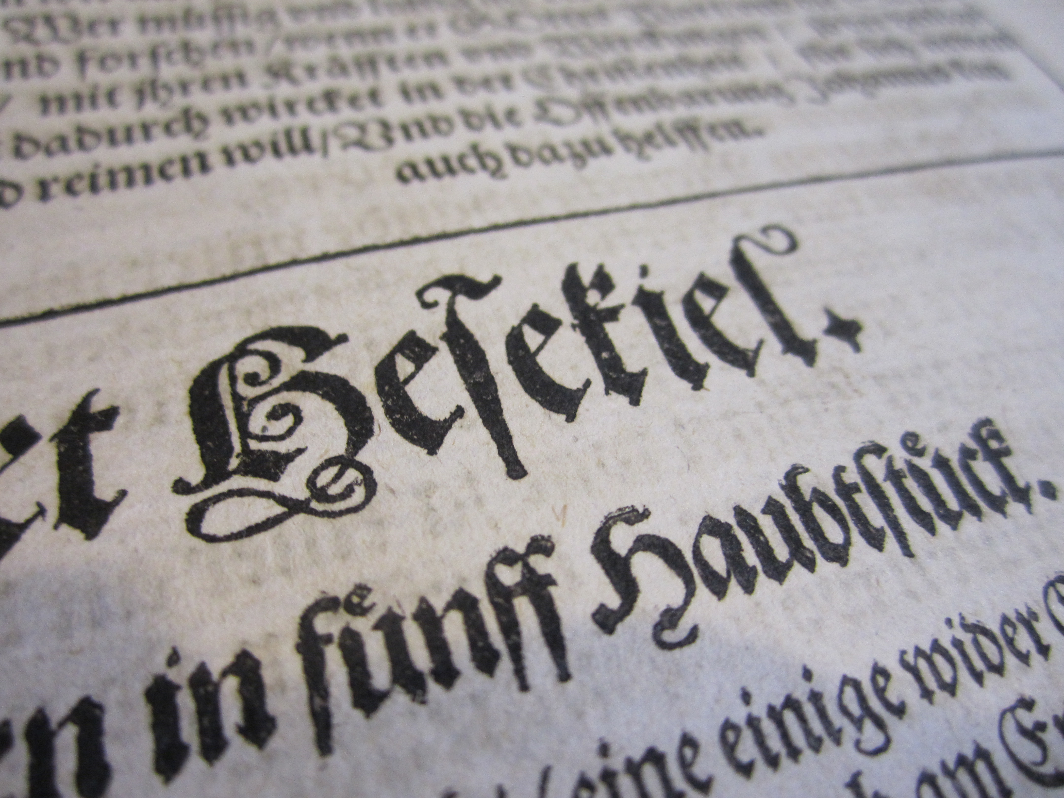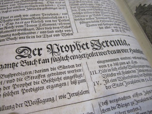This German Bible was printed in 1652. Check out all of the different sizes of type!