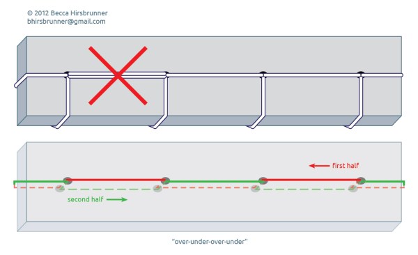 “Woven” is an exception to the rule: it is a geometric pattern, but the sewing actually goes from one side to the other and back again just to complete one ‘V’ shape. But the edges and the sides still use the ‘over-under-over-under’ approach.