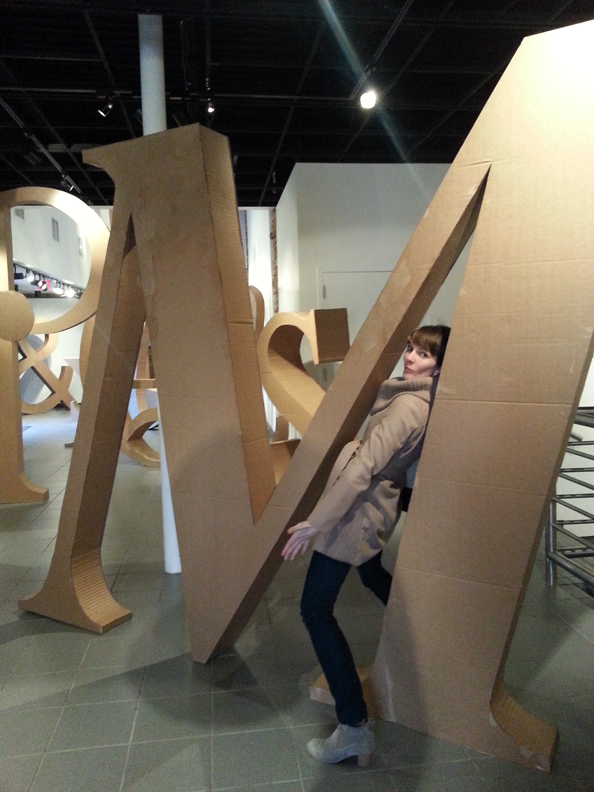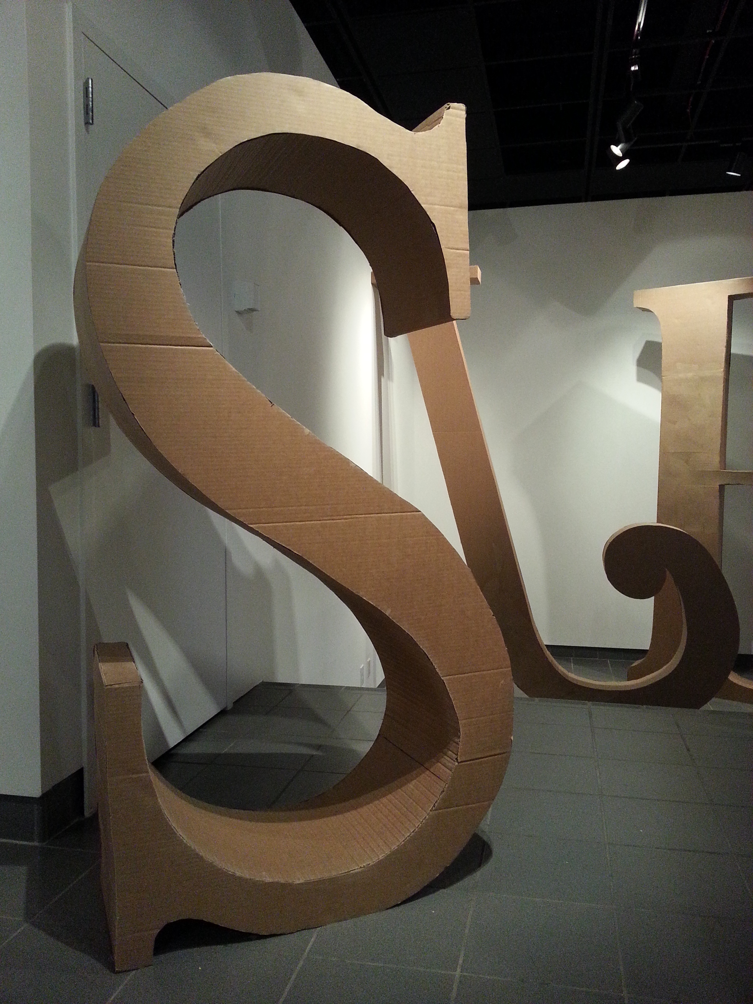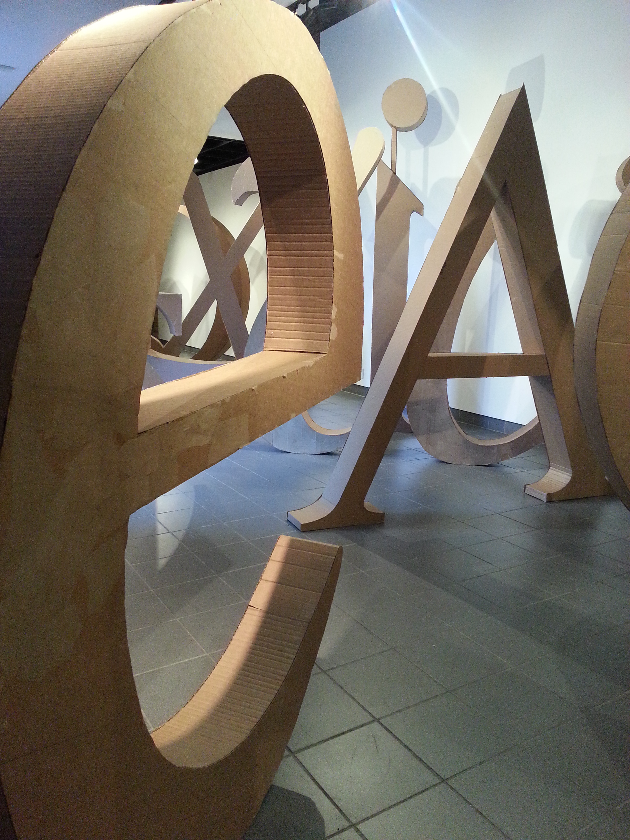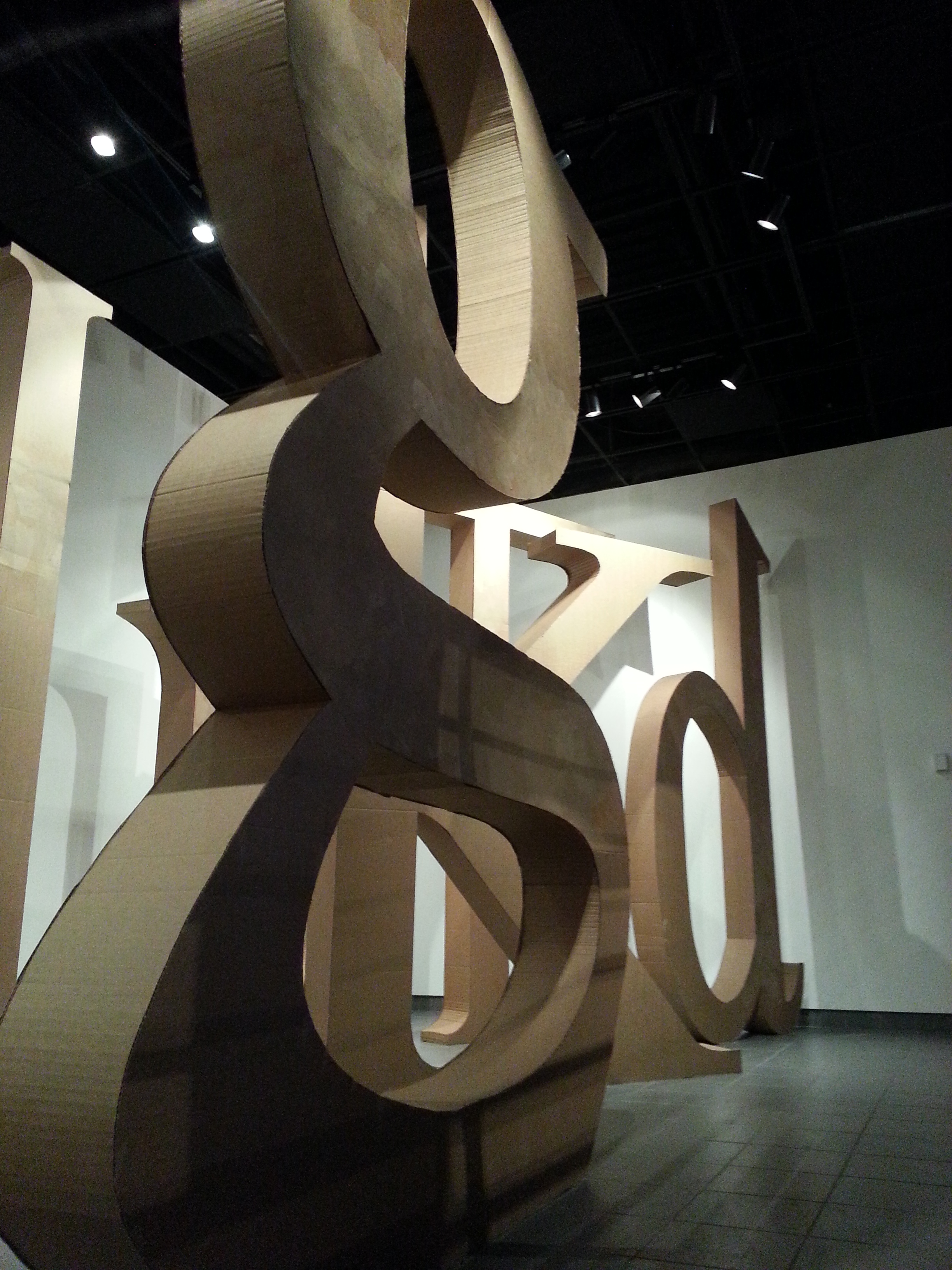 these cardboard letters are pretty stinkin’ cool! The are part of an exhibit by James Grashow called ‘Corrugated Alphabet Project’ at the University of Tulsa in Oklahoma, USA. As you can see, some of the letters were enormous! I enjoyed how he switched from regular to italic and uppercase to lowercase to spice it up. The varied scale kept it lively as well.