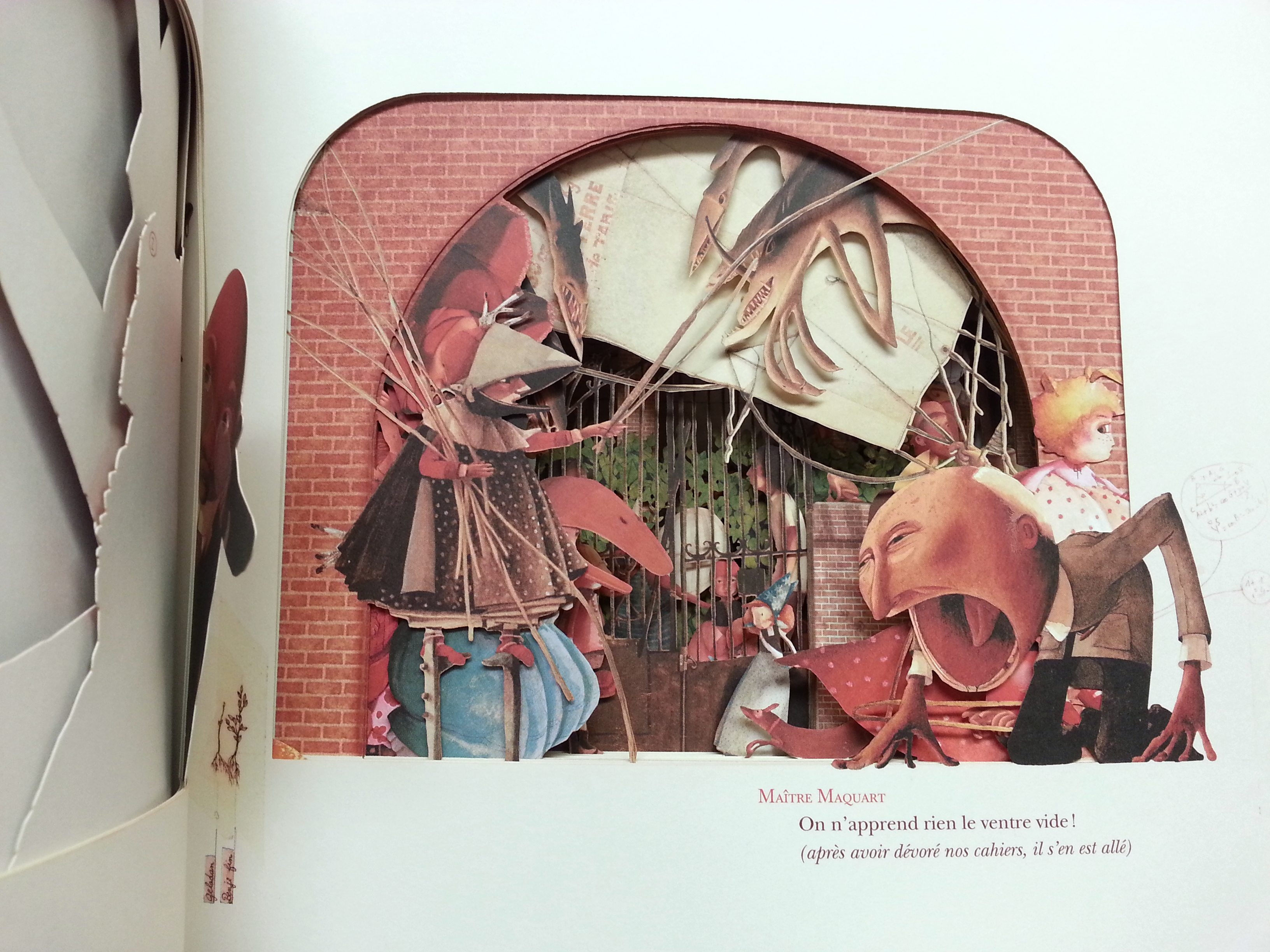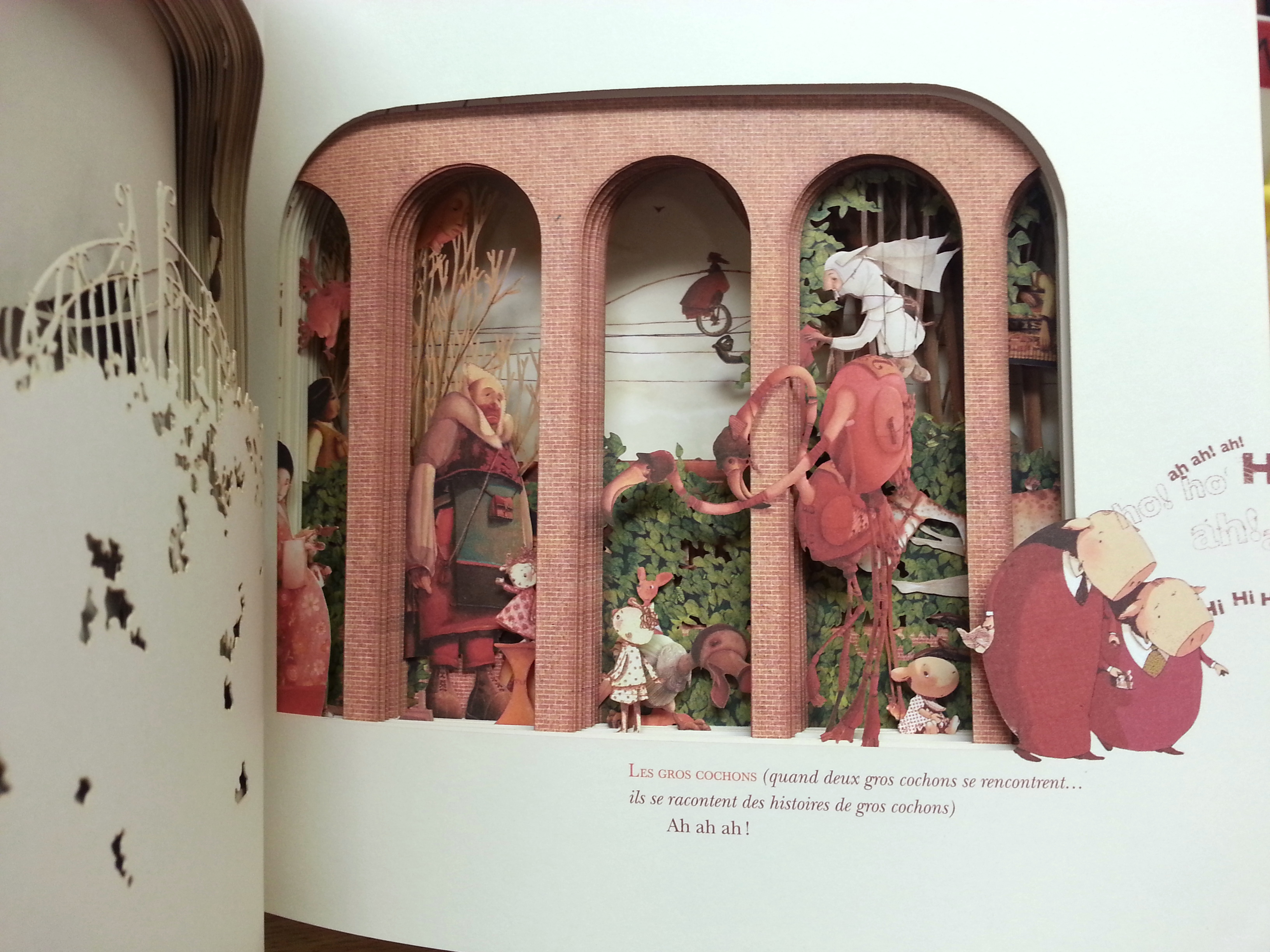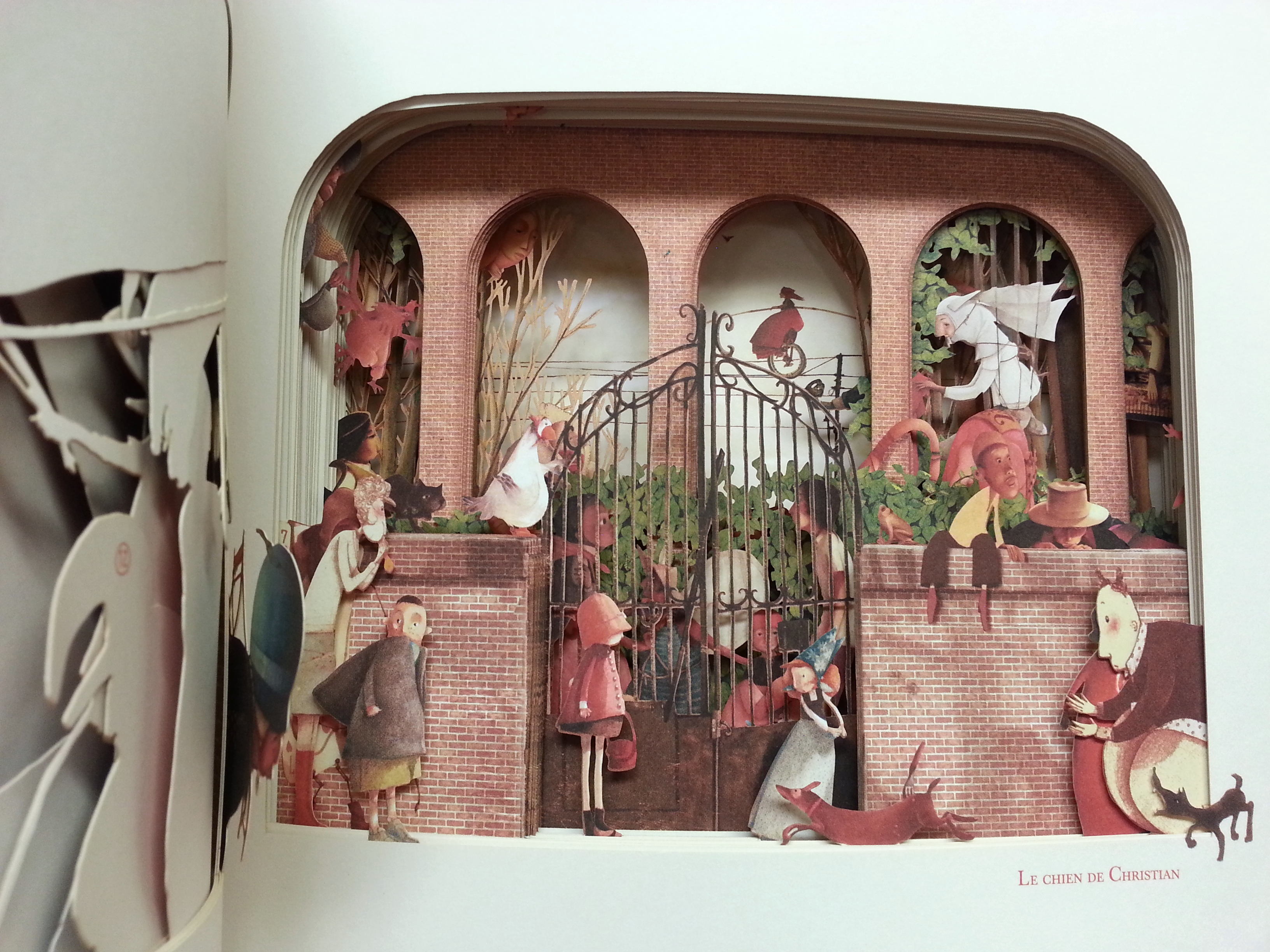 I was recently given this amazing French book by Rébecca Dautremer, and I just had to post some pictures of it. It has nearly 100 laser cut pages, and I cannot believe how intricate and how tiny some of the laser details are. The effect is much like the current experiments in ‘book excavation’ or the work of Brian Dettmer. I have to say, it’s inspiring me to think about what kind of effects I could achieve on the laser cutter that I have access to. I’ll have to check out what it does to paper!
